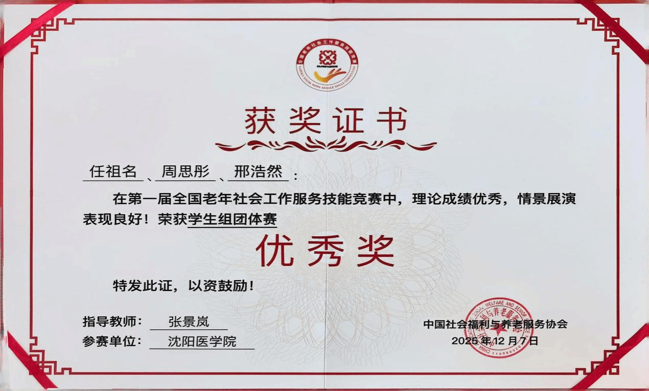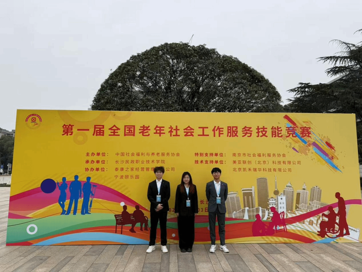 近日,“首届全国老年社会工作服务技能竞赛”湖南长沙圆满落幕。我校由医养健康产业学院学生组成的代表队斩获优异成绩其中,任祖名、周思彤、邢浩然荣获学生组团体赛优秀奖,邢浩然同学荣获个人优秀奖