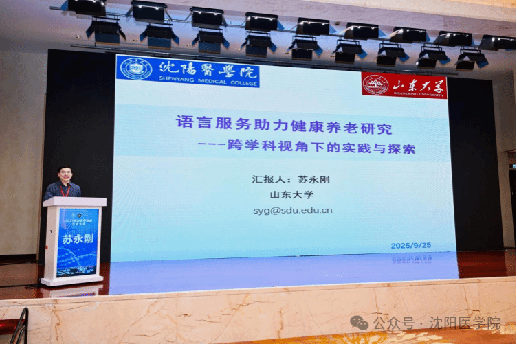 山东大学外国语学院副院长、基础医学院医学心理学与伦理学系主任苏永刚教授作题为“语言服务助力健康养老研究——跨学科视角下的实践与探索”报告。苏永刚教授聚焦我国老龄化尤其是农村老龄化问题,针对老年人心理健康痛点,将语言学与养老服务结合。通过多样抽样与科学分析,构建健康关怀语料库,为健康养老提供新路径,是跨学科助力养老事业的生动实践,彰显该领域创新探索。