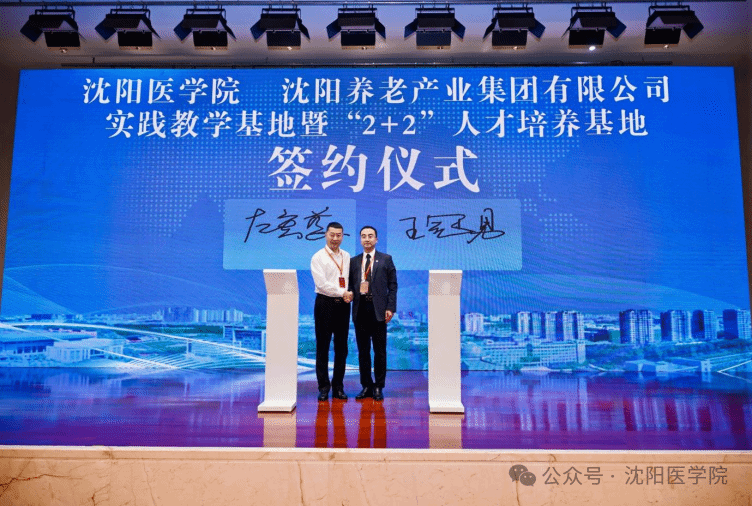 沈阳医学院校领导王冠男教授与沈阳养老产业集团有限公司董事长左宏慈先生共同签署实践教学基地暨“2+2”人才培养基地合作协议。学校养老服务管理专业依托实践教学基地教学资源,在全国率先实施“2+2”人才培养模式创新改革。本次签约充分利用校企双方优势资源,形成“育人-实习-就业”一体化的培养模式,提高学生的岗位胜任力,成为推动医康养产业“人才供给”与“行业需求”精准对接的关键亮点,为整个医康养行业定向输送“懂理论、会实操”的复合型人才。